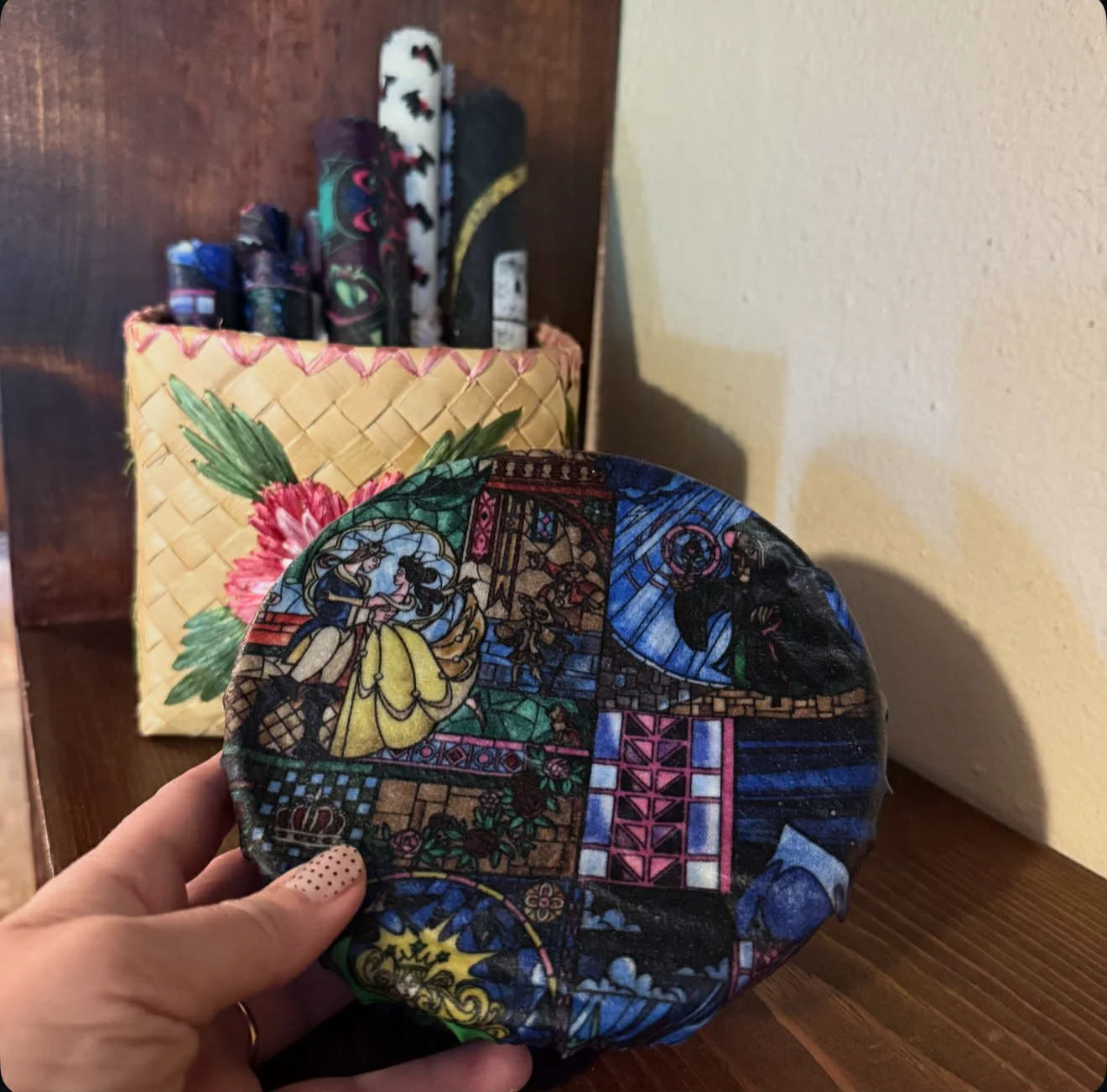 6. after it dries. Roll it up and secure with a ribbon and store it to replace your plastic wrap. Just press it firmly over the container and it will stick as your hands warm it up.
